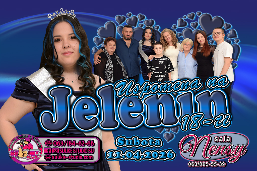 Jelena M. (18-ti) Fotografije sa Jeleninog 18-og rođendana, Održanog u Sali „Nensy” u Subotici. Dečiji Rođendani18. RođendaniLjubilarni RođendaniRazni Rođendani LokacijaMuzika Sala Nensy / Karolja Čeha 2, Subotica / Pozovi Nas / Facebook / Instagram DeeJay Ješke / Pozovi Me / Facebook / Instagram Nazad na prethodnu Tags: 18-ti Jelena M. Punoletstvo Sala Nensy Post navigation Previous Denis V. (Ljubilarni 30-ti) Povezane priče Marijana K. (18-ti) Marijana K. (18-ti) Subota 13.09.2025 Leon N. (18-ti) Leon N. (18-ti) Petak 29.08.2025 David T. (18-ti) David T. (18-ti) Subota 10.05.2025
