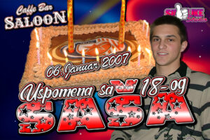 Caffe „ Saloon ” Subotica OBJEKAT TRAJNO ZATVOREN CAFFECLUBRESTORANGOSTIONASALAVINARIJAVILA I SALAŠIGRAONICAŠKOLACRKVE Saša (18-ti) SuLike Studio Subota 06.01.2007 Fotografije sa Sašinog 18-og rođendana, Održanog u Caffe Baru „Saloon” u Subotici Pogledaj Više...